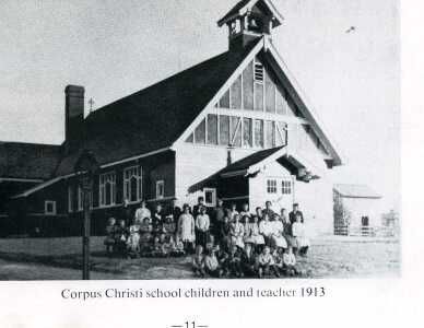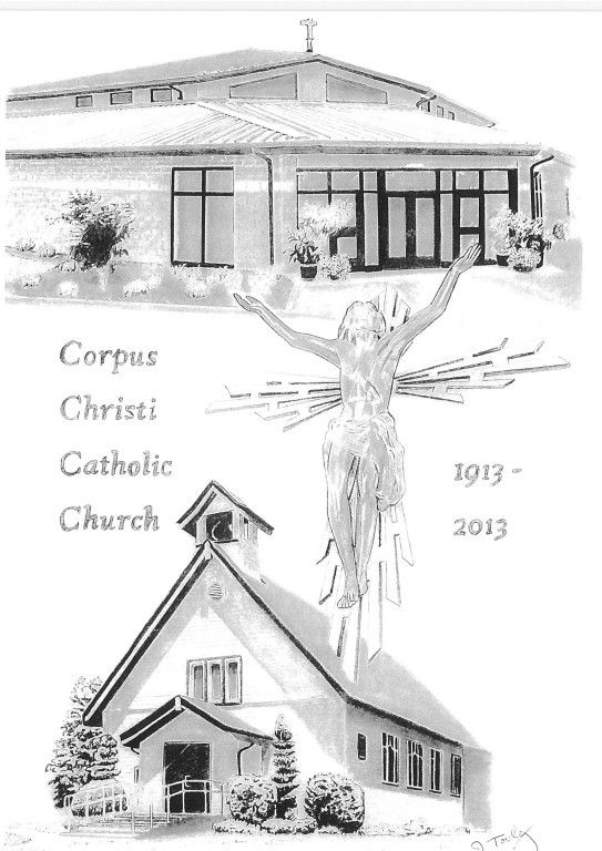 .The parish was organized in Janury 1913 and Mass was offered in the town hall until the new church could be built. The foundation was dug in March 1913 and on July 30, 1913 the church was formally dedicated. The church was complete in every detail at the time of the dedication. The pews that were restored after the Cathedral fire in 1912 were given to Corpus Christi. The parish consisted of 34 familes at its beginning