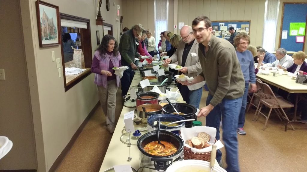 This joint event with St Joseph is held on Holy Thursday prior to the Mass of the Lord's Supper. Soups and salads are provided by the parishioners and is free to all.